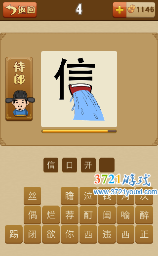 看图猜成语每周竞赛中,一个信字,口字里面流出很多水的成语是什么?