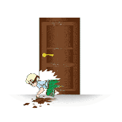 看图猜成语 小孩一脚将门踢坏了。答案是破门而入。...