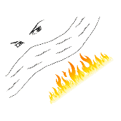 看图猜成语 一只眼睛 一条河 一片火海。答案是隔岸观火。...