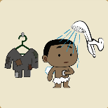 看图猜成语每周竞赛 破旧衣服 小孩子在冲凉。答案是一贫如洗。...