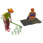 看图猜成语每周竞赛 男的在田里 女的在织布。答案是男耕女织。...