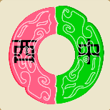 看图猜成语每周竞赛 一块玉佩,左边红色写着西,右边绿色写着中字。答案是中西合璧。...